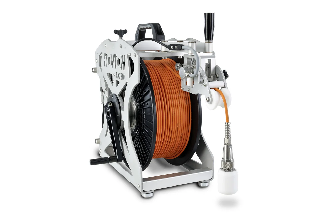 Kabeltrommel med plass til 500 meter kabel og motor. Trommelen har en kraftig brems som gjør at den kan brukes til både horisontale og vertikale inspeksjoner. Kabeltrommelen er synkronisert med traktoren, men kan også kjøres separert via en medfølgende fjernkontroll.