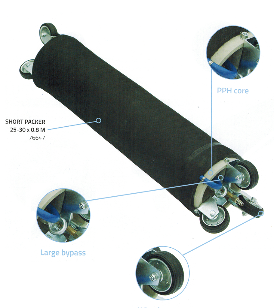 Sava short packers har en utskiftbar dobbelt lags gummihylse montert på en PPH-kjerne. Et slikt design gir maksimal mulig bypass. De er utstyrt med hjul og er opptil 1 m lang.